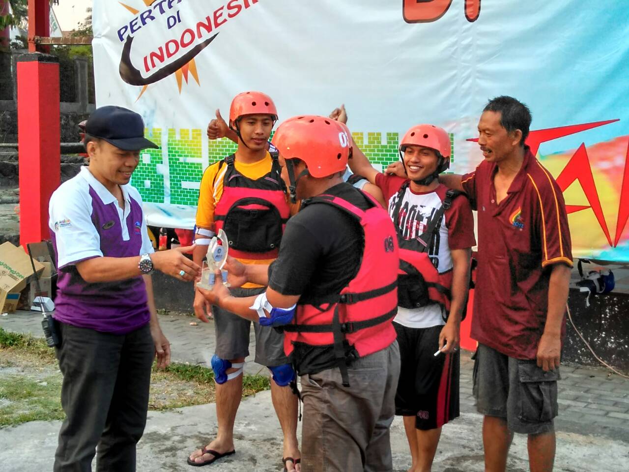 TEMANGGUNG - Area Benteng Takashi, wahana terbaru dari pikatan waterpark, sontak menjadi ramai disaksikan penonton yang datang untuk menyaksikan partai final pertandingan persahabatan “Uji Ketangkasan Benteng Takashi” antar BUMD Se-Kabupaten Temanggung, baru-baru ini. Tim yang melakoni babak final adalah tim dari PDAM Tirta Agung yang beranggotakan Andi Nugroho, Superti, Andri, Slamet, Bambang Tego dan Yeni melawan tim dari PD. BKK Pringsurat.